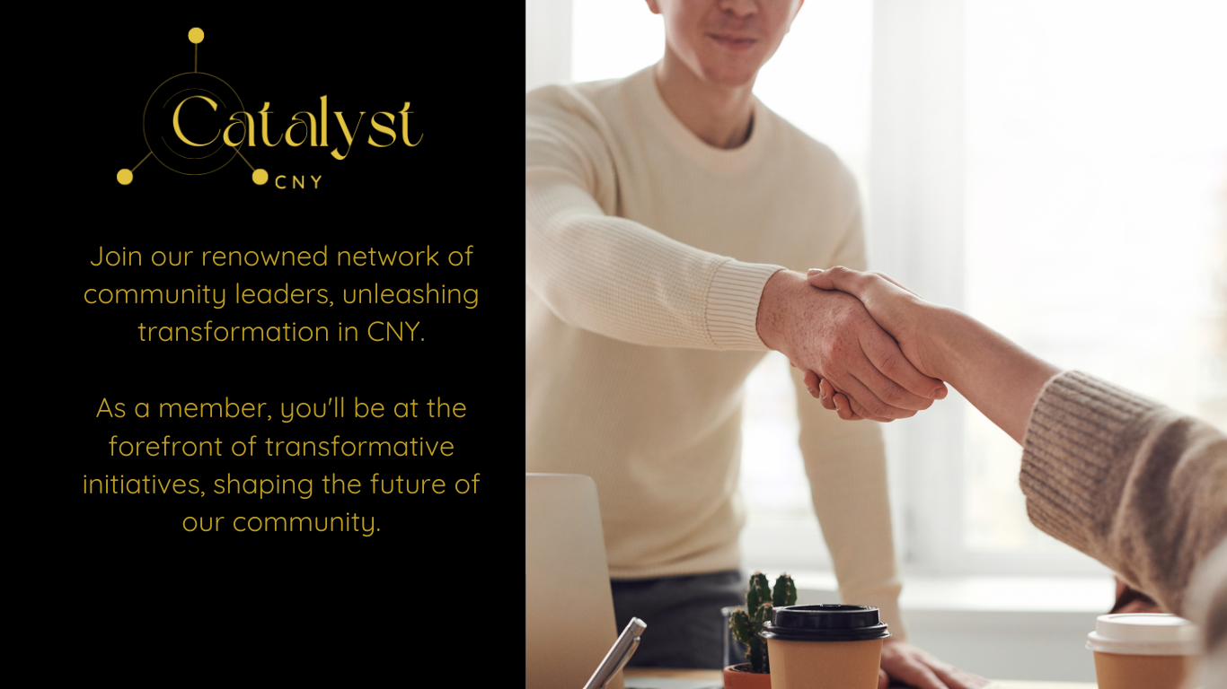 Our members work behind the scenes because they care deeply about the future of our community and don’t want to make it about them, it’s about our community. By joining Catalyst CNY, you become part of a network that focuses on meaningful, confidential collaboration. Your contributions will help shape a better tomorrow for everyone, ensuring a lasting, positive impact for generations to come.